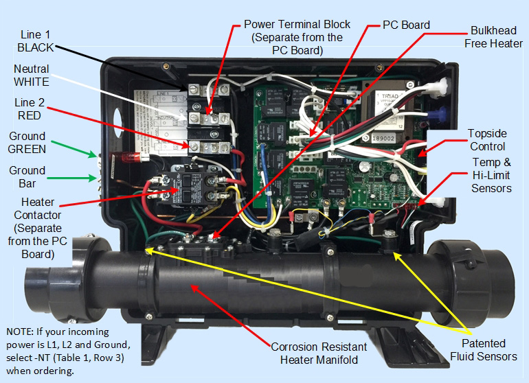 Operates up to 5,500 Watt Heater and up to 1 Jet Pump, 1 Circ. Pump and 1 Blower PM Series - Low Operating Costs Replaces All Controls With 15" Heater Manifolds